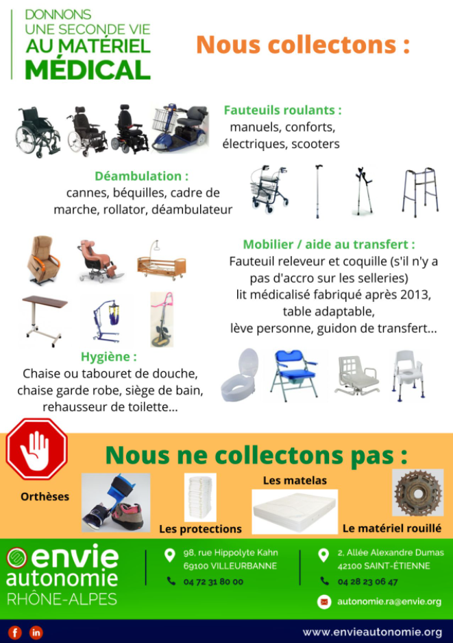 Le matériel médical peut avoir une seconde vie. Envie Autonomie Rhône-Alpes s’y emploie en collectant des dispositifs médicaux inutilisés, en le reconditionnant et en les proposant sur le marché à des prix solidaires. Lucile Gacon, chargée de développement, revient pour nous sur ces activités et les défis sociaux, écologiques et économiques relevés par cette jeune structure.