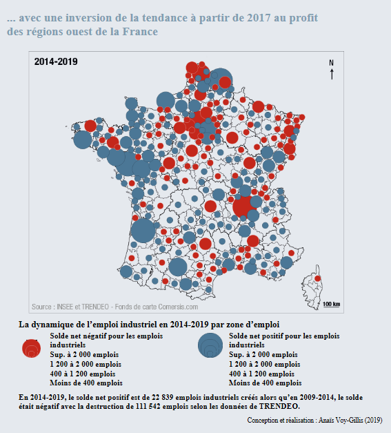 La crise de 2008, le rapport Gallois actant de l’échec de la stratégie de Lisbonne et cherchant les clés du fameux « choc de compétitivité » plaident la cause de l’industrie. Le « revival » industriel fait timidement ses débuts. À partir de l’automne 2018, le mouvement des Gilets jaunes révèle l’ampleur des fractures territoriales. Impossible d’ignorer le sentiment de déclassement de celles et ceux vivant dans des espaces désertés par la croissance, l’emploi, l’industrie et les services publics.