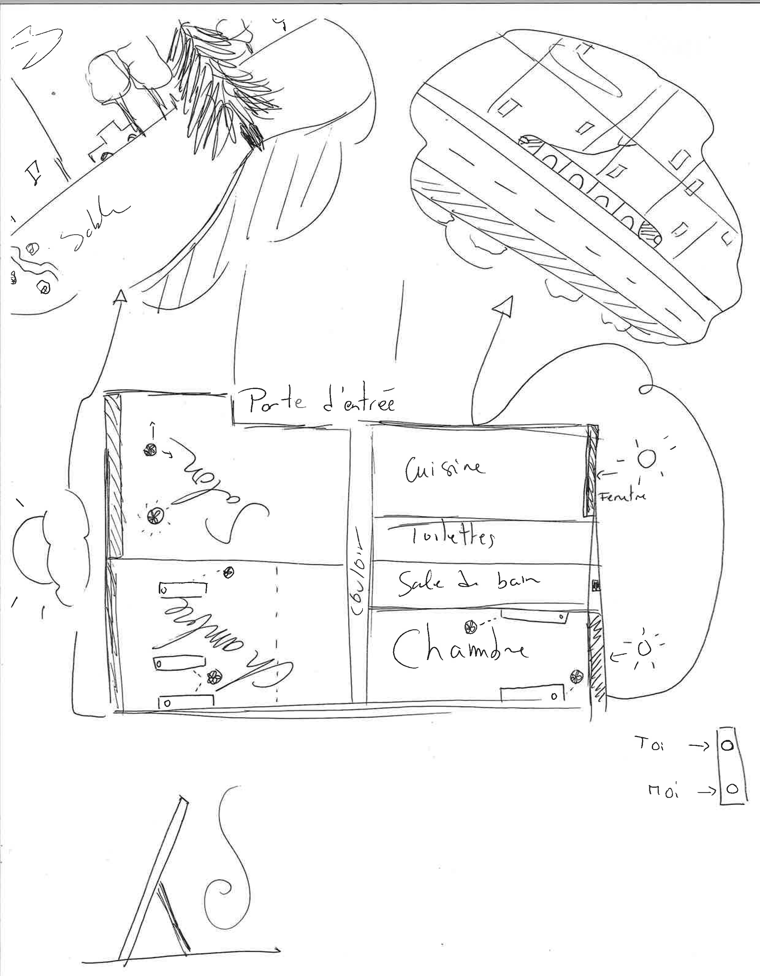 En dessinant la carte mentale , Anissa place six points dans l'appartement correspondant aux emplacements des ventilateurs : « Comme c'est petit chez nous (NDLR : 70 m²) et qu'on est beaucoup quand même, on ressent vite le changement de température. Parfois il fait presque plus chaud dedans que dehors... Donc oui mon père a rajouté le petit ventilateur du salon, le petit ventilateur de la chambre, celui-là… En fait on a doublé en prévoyance ». La journée, comme l’appartement est vide, les ventilateurs sont éteints et « Ça consomme beaucoup et j’ai peur que ça chauffe. On les allume quand on fait à manger et surtout la nuit. C’est surtout quand on est assis et qu’on ne bouge pas ».