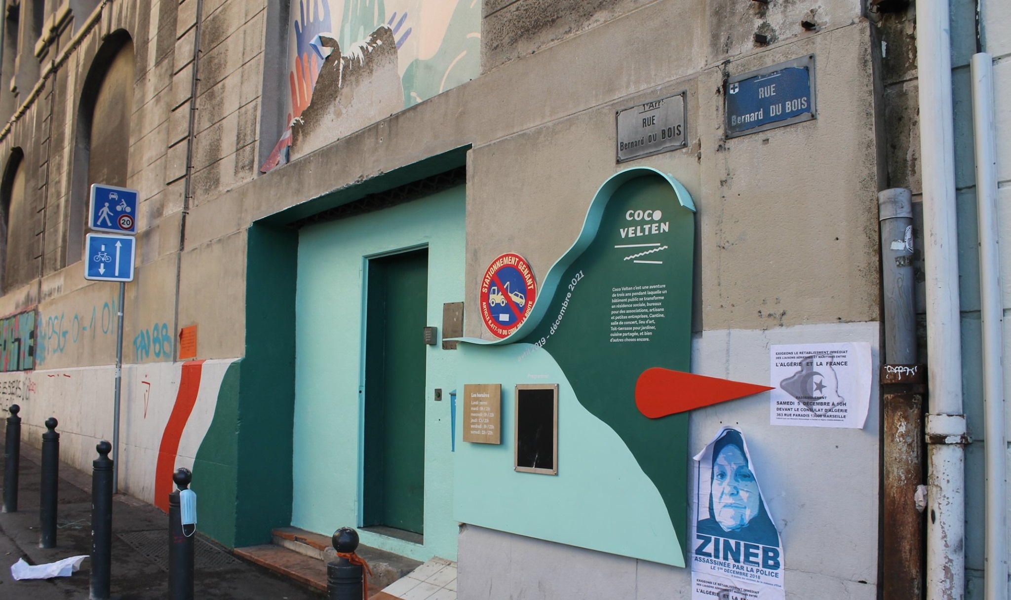 Coco Velten est une occupation temporaire d’un bâtiment de 4 000 m² de l’ancienne Direction des Routes en cours de rachat par la ville de Marseille. Sur l’invitation de la Préfecture et le pilotage de Yes We Camp, Plateau Urbain et Groupe SOS, le lieu a comme vocation la lutte contre l’exclusion et l’expérimentation de nouvelles manières de cohabiter. À côté des espaces de travail accueillant 40 porteurs d’activités, le projet héberge près de 80 personnes en résidence hôtelière à vocation sociale. Le site se veut un espace capacitant et de mise à l’abri durable pour des personnes ayant vécu un parcours de rue, en situation de rétablissement. Coco Velten est un tremplin pour une réinsertion sociale et professionnelle, via la possibilité de s’essayer à la restauration au sein de la Cantine, restaurant expérimental sur site, et le brassage dans un lieu ouvert à tous les publics, connecté au quartier, grâce à différents espaces collectifs aménagés au sein du bâtiment.