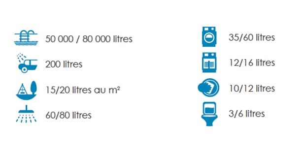 Cette consommation peut énormément varier d’un territoire ou d’un ménage à un autre, en fonction du climat, du nombre de personnes dans le foyer, mais aussi du type de logement et de l’équipement dont disposent les ménages. Habiter dans le sud, avoir une maison individuelle ou disposer d’une piscine sont des situations qui participent à augmenter la consommation d’eau d’un ménage, comme l’illustre cette infographie du CIEAU (2020).