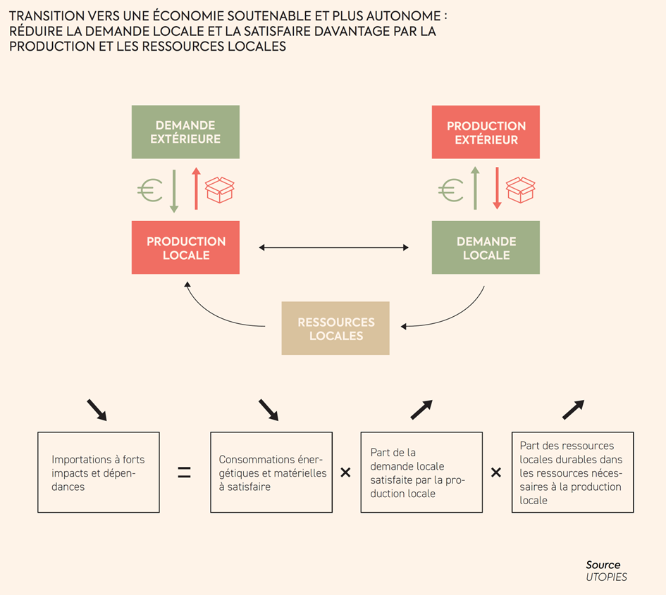 Accélérer la transition vers une économie soutenable et plus autonome implique de réduire les flux d’importation à fort impacts/dépendances en activant le circuit économique local.
