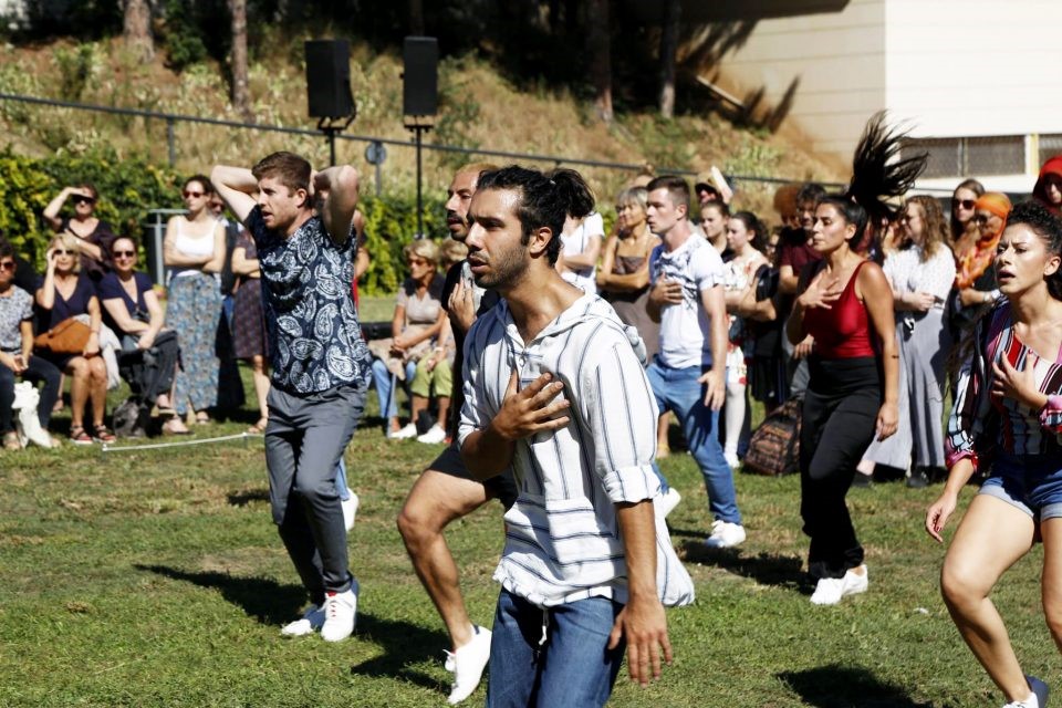 Sharon Eskenazi, Centre Chorégraphique National de Rillieux-la-Pape (CCN/R), en périphérie lyonnaise, a pour sa part éprouvé la nécessité d’investir cette question de la mobilité à partir d’un projet reposant sur la pratique de la danse. Elle qui est arrivée en France en 2011 avec la double nationalité française et israélienne, qui a vécu dans cette ville où se côtoient plus de 70 communautés et y travaille encore, utilisait déjà cette discipline auparavant, « comme un outil de rapprochement de groupes en conflit ».