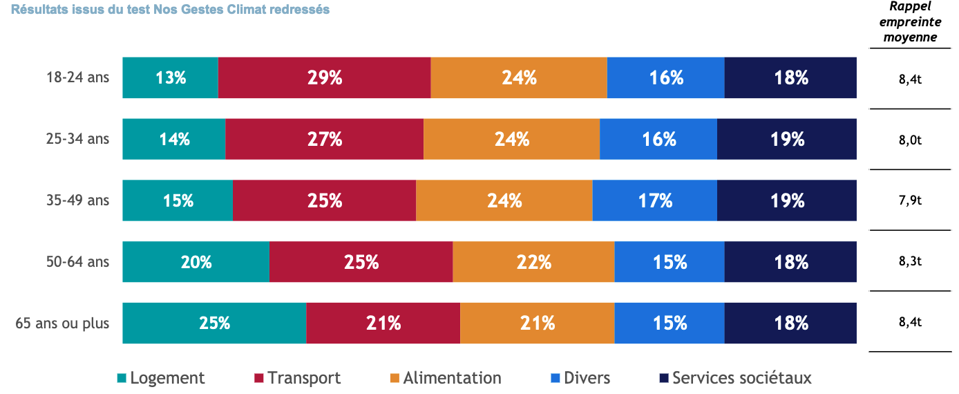 Pour ce qui concerne les actions à mener à titre individuel, on constate que les jeunes sont plus nombreux à déclarer qu’ils seraient prêts à changer leurs habitudes pour le climat. Cette volonté d’agir décroît avec l’âge. Après avoir calculé leur empreinte carbone, seuls 8 % des 18-24 ans n’envisagent pas de changer d’attitude, contre 18 % des 65 ans et plus.
