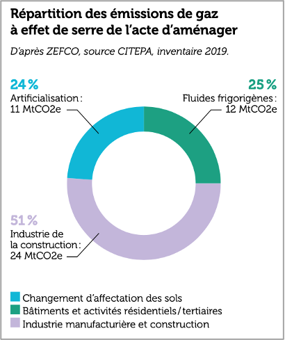 Au total, l’acte d’aménager représenterait donc 47 Mt. CO2e/an, soit presque 10 % des émissions territoriales de la France en 2019, qui s’élevaient alors à 497 Mt. CO2e.