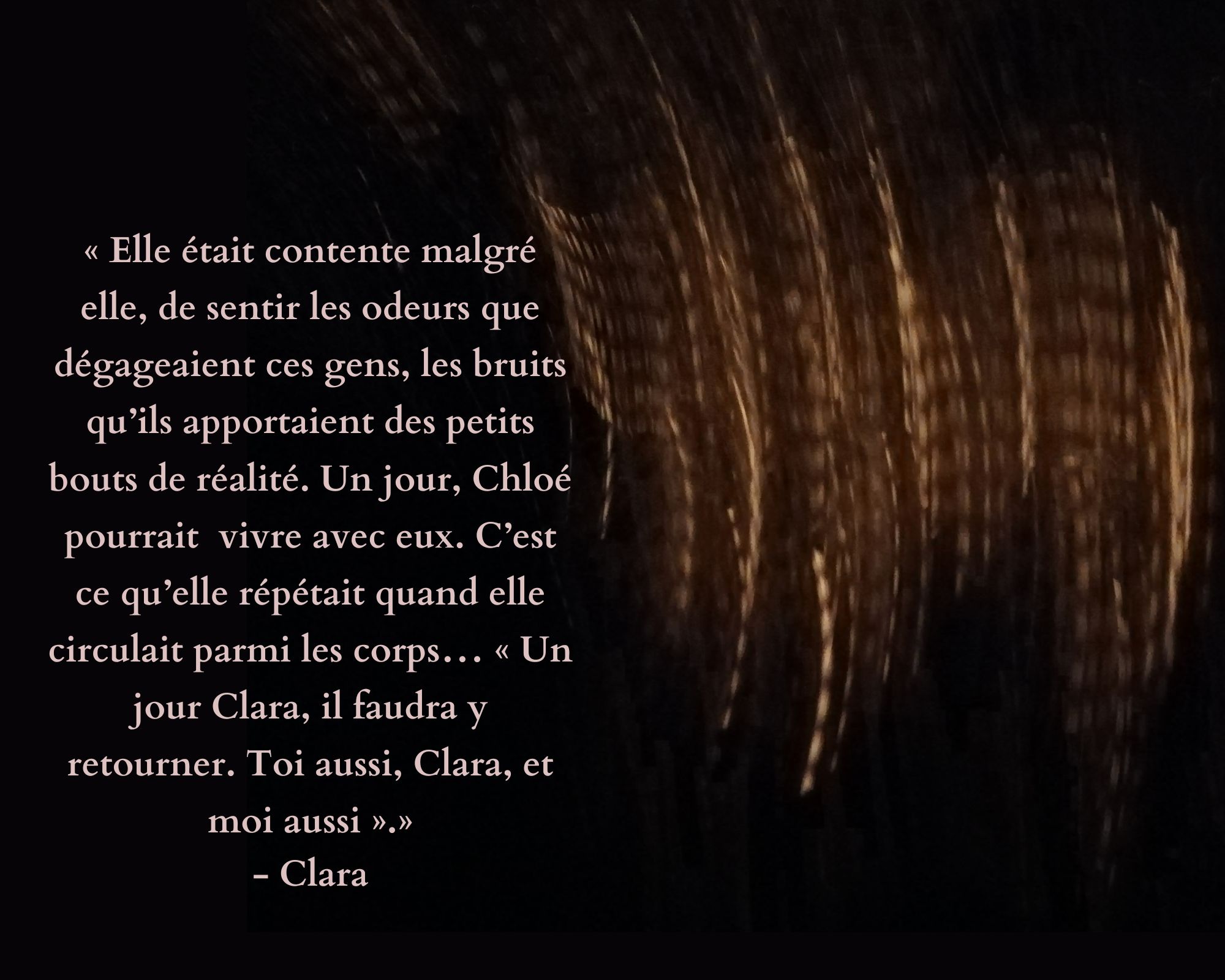Choisir la voie de la normalité se révèle souvent, sous la plume des auteurs, être un choix déchirant, fruit d’acceptation de ses limitations, de renoncement aux marqueurs d’une vie tissée de famille, de travail ou de logement ordinaire, tout en se découvrant des ressources et une liberté nouvelles dans ce cadre redéfini. « J’ai compris que ma guérison venait en grande partie de ma décision de revenir dans le monde réel, que le courage, c’est d’accepter chaque jour d’y retourner, d’y évoluer quand on s’est habitué à vivre loin de lui », écrit Sarah Bensaid. C’est bien là que va achopper l’expérience de nos deux héroïnes, Chloé et Clara qui préféreront la lente dissolution de leurs corps dans l’opacité tranquille d’un lac, à la minéralité d’une vie normée.