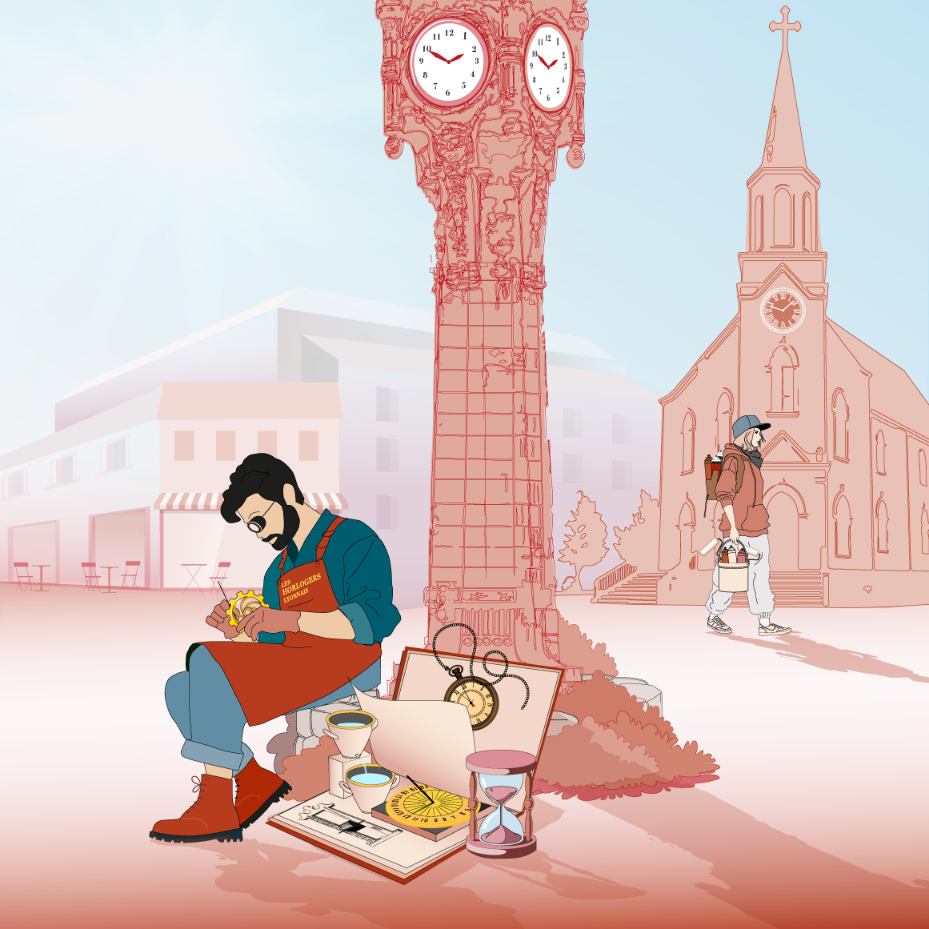 Prendre soin des temps, c’est prendre soin de la vie ensemble, instaurer de la synchronie, voire des rites, dans un monde qui s’en éloigne. J’aime ce rendez-vous avec l’horloge monumentale : entrer dans la pénombre de son fût, gravir l’étroite échelle en fer, ausculter la mécanique des cadrans. Je pense au maire Étienne Marin, qui l’a commandée au début du 20e siècle et y voyait un moyen de faire de la République la nouvelle « maîtresse des horloges ». En pleine époque de séparation des pouvoirs entre États et Église, il importait de donner une heure « laïque, républicaine et allégorique » !